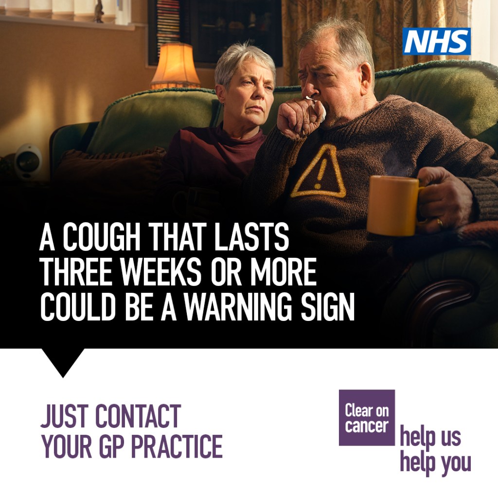 - A cough for three weeks or more could be a sign of cancer. Just contact your GP practice