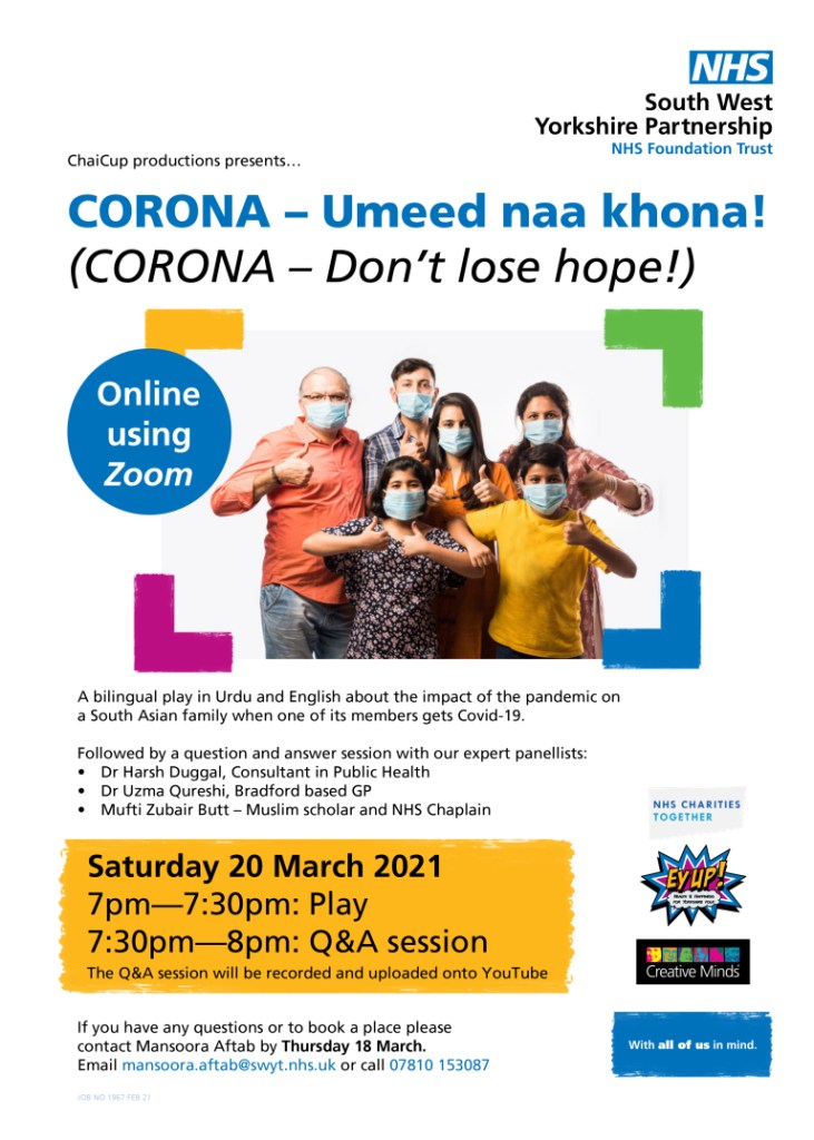 Anyone feeling a little run down and in need of cheering up, then why not log into Zoom and catch this new production which will be presented In Urdu and English. On Saturday 20 March 2021.