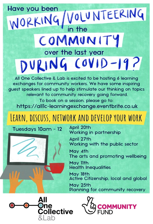 All One Collective & Lab would like to invite you to a series of Learning Exchanges aimed at workers and volunteers that have continued to support local communities during Covid-19 over the last year.
