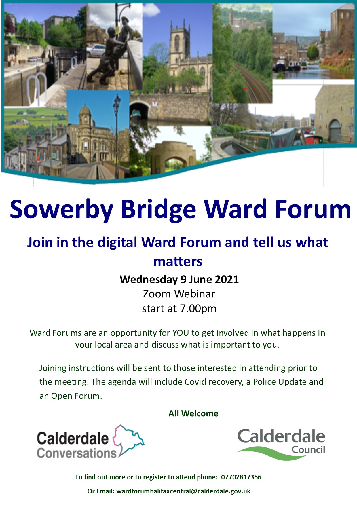 The next ward forum for Sowerby Bridge will be on Wednesday 9 June 2021 at 7pm.