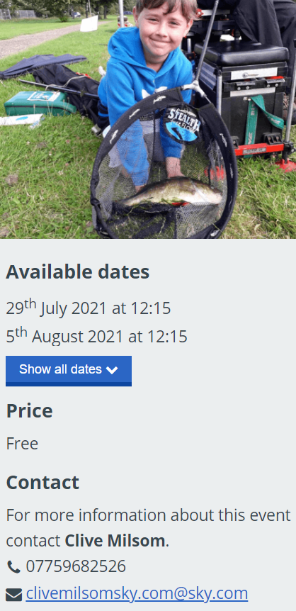 Coarse Fishing – Coaching for Juniors aged 6 to 16