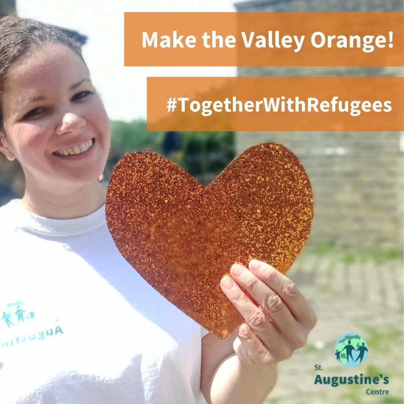 The orange heart is a symbol used by the #TogetherWithRefugees campaign and we want to flood the Calderdale Valley with orange hearts to show our support for this important anniversary. All you have to do is take a picture holding an orange heart and tag St Augustine’s on social media and/or email it to them.