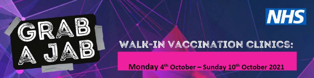 Please note: Booster jabs are not available at these walk in clinics. Only the first and second doses of the vaccine.