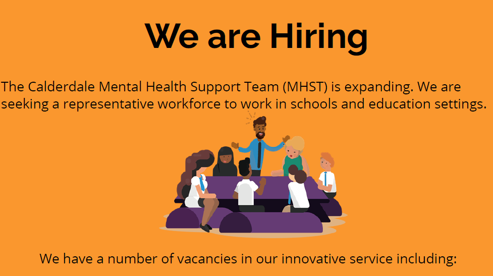 Northpoint Wellbeing have a number of vacancies in the innovative Calderdale Mental Health Support Team, which works in education settings to provide mental health interventions to children, young people and parents/carers. We also support staff in schools and colleges to build the skills and confidence needed to identify and meet the emotional health needs of their students.