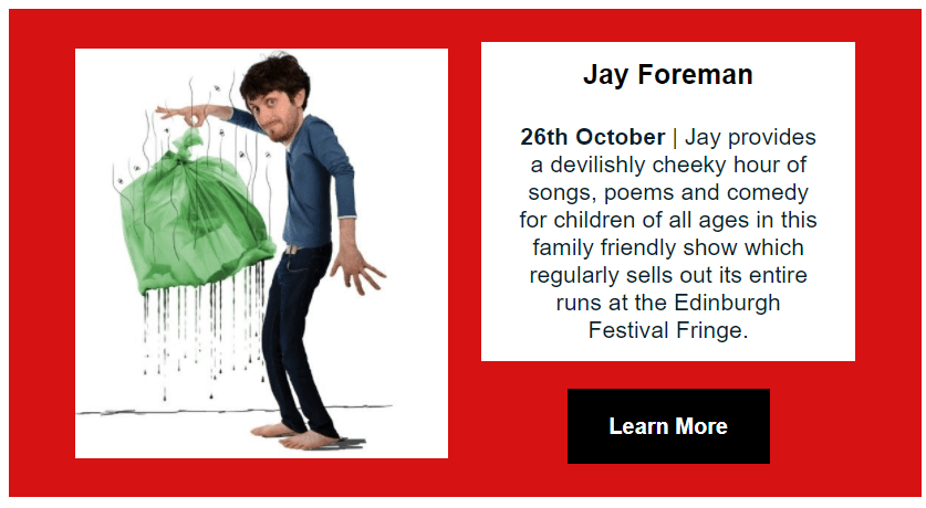 Take a look our full list of events below, prices start from £7 per person.