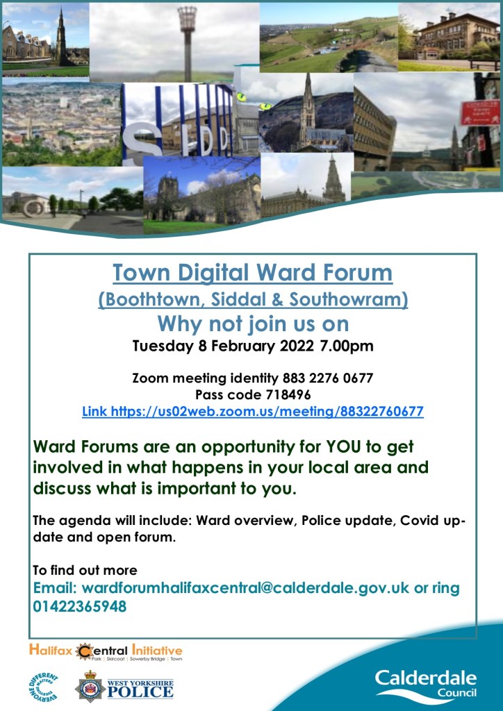 Ward forums are for people in Calderdale to get involved in what happens in their local area and discuss what is important to you. By working together we can talk about local issues and plan for the future.
