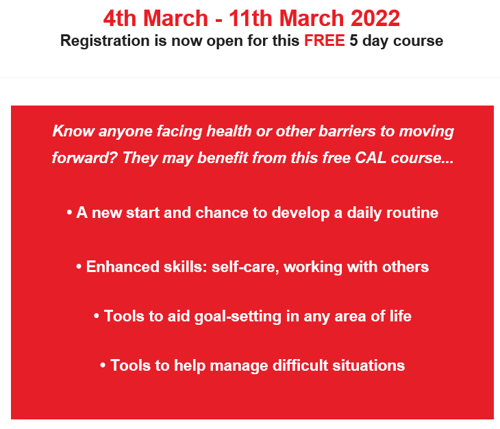 Free Calderdale LAB Wellbeing February 25, 2022 / helloitssarahdyer Our free Calderdale LAB Wellbeing course is now in-person and starting on the 4th March! Share this: Click to share on Facebook (Opens in new window) Facebook Click to share on X (Opens in new window) X Click to email a link to a friend (Opens in new window) Email Click to print (Opens in new window) Print Click to share on Pinterest (Opens in new window) Pinterest Click to share on LinkedIn (Opens in new window) LinkedIn Click to share on WhatsApp (Opens in new window) WhatsApp Like Loading...
