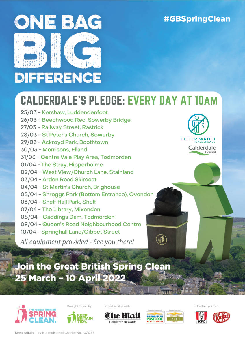 All clean ups and litter picks across Calderdale in the attached flyer