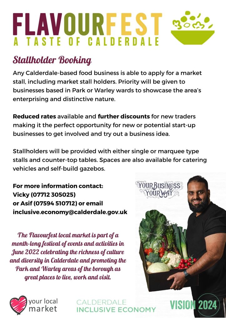 Street food, local produce, handmade crafts…#FLAVOURFEST is the perfect opportunity to sell your wares this June 25/26 June at Calderdale College car park.