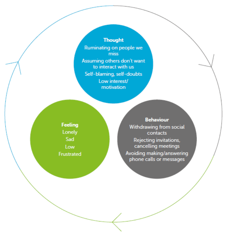 When we are on our own, but don’t want to be, it’s natural for us to feel a bit lonely and sad. We may start thinking in a negative or self-critical way, which can lead to low motivation and social withdrawal. Without active coping strategies, this pattern may continue to make our mood even lower and result in more negative thoughts and avoidance responses. This is what we call the vicious cycle of loneliness. VitaMinds is here for you.