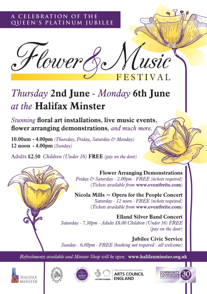 Halifax Minster will be blooming during the extended weekend celebrations, bringing to you a series of musical celebration events for the Queen’s Platinum Jubilee.