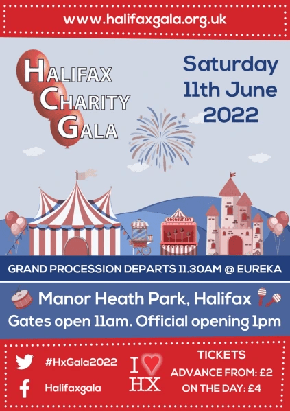 The 64th Halifax Charity Gala will take place on Manor Heath Park on Saturday 11th of June with the Grand Parade Procession starting from Eureka.