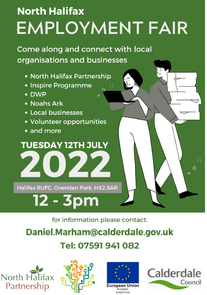 Find out what career opportunities are available to you in the North Halifax Partnership Employment fair at Halifax RUFC on Tuesday July 12th between 12pm and 3pm.