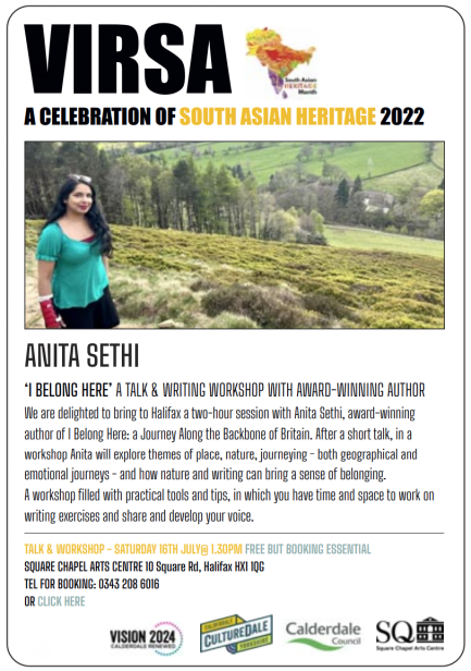 Celebrate South Asian Heritage Month 2022 with a free talk and writing workshop with Anita Sethi, award winning author of I Belong Here: a Journey Along the Backbone of Britain.