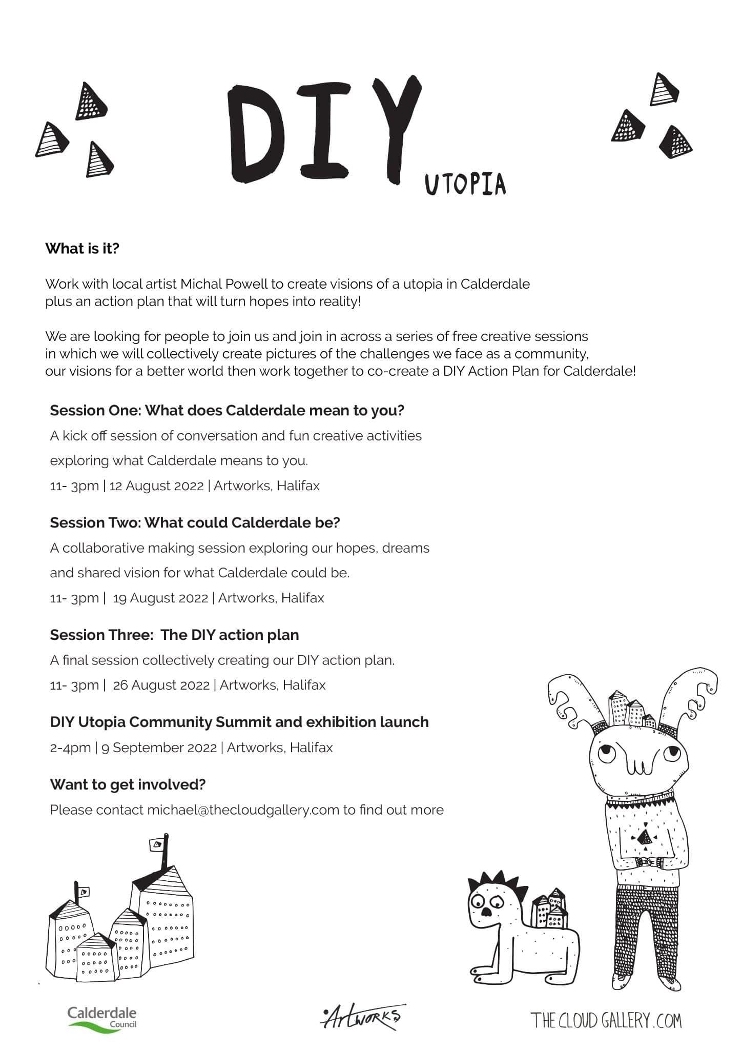 3 sessions starting on 12th August and culminating in a DIY Utopia Community Summit and exhibition on 9th September.