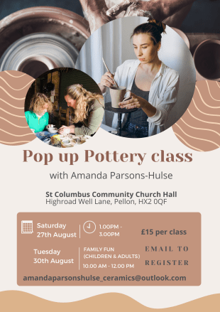 St Columba’s Church will be hosting two Pop Up Pottery classes with Amanda Parsons-Hulse.