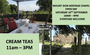 Historic Methodist Chapel which is well worth a visit – and we do great cream teas in summer! Here is your chance to find out in our Open Day this Saturday 10th September from 10am until 4pm.