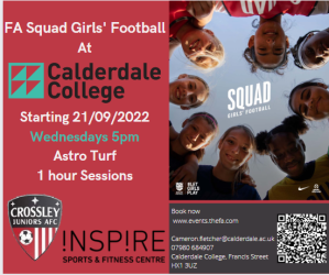 Crossley Juniors AFC girls section have teamed up with Calderdale College to provide weekly football sessions at the college to further promote girls participation in football.