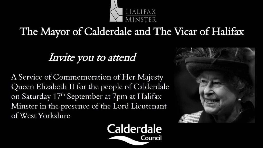 Halifax Minster will hold a Service of Commemoration for HM Queen Elizabeth II at