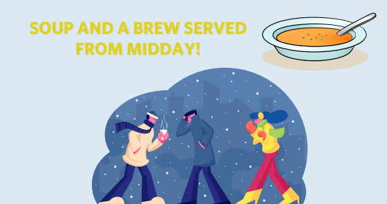 SOUP AND A BREW SERVED FROM MIDDAY!