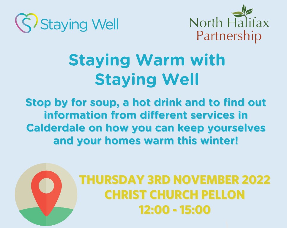Stop by for soup, a hot drink and to find out information from different services in Calderdale on how you can keep yourselves and your homes warm this winter!
