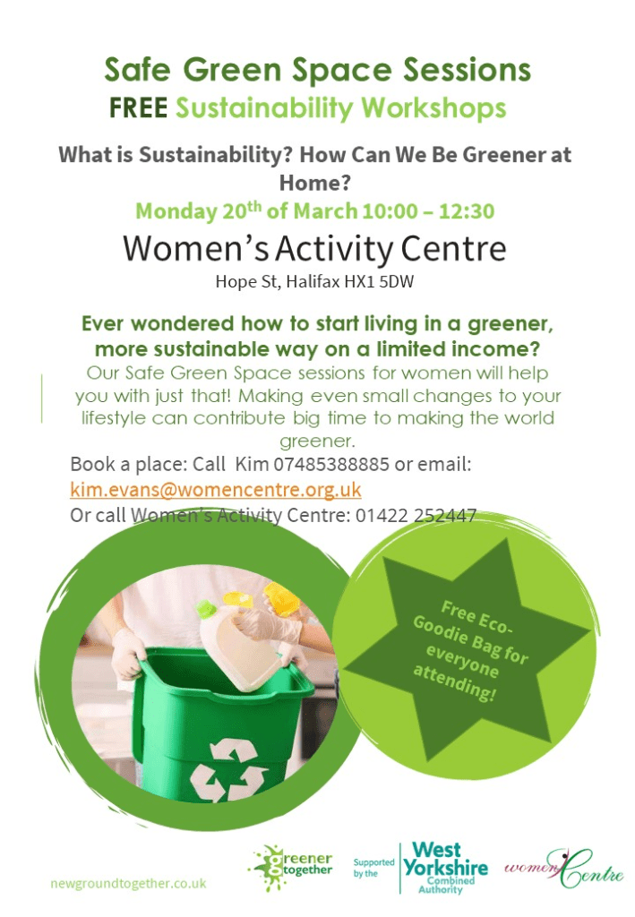 Greener Together, Halifax Womens Centre, will be introducing sustainability through the sessions and hopefully making it more relevant on a day-to-day basis.