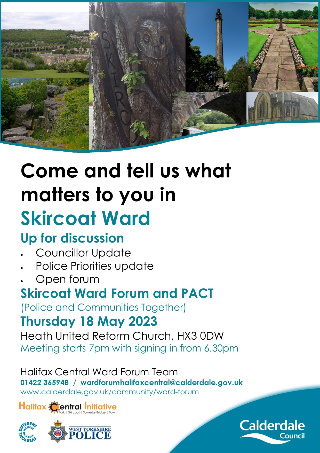 For more information email: wardforumhalifaxcentral@calderdale.gov.uk or Phone 01422 365948
