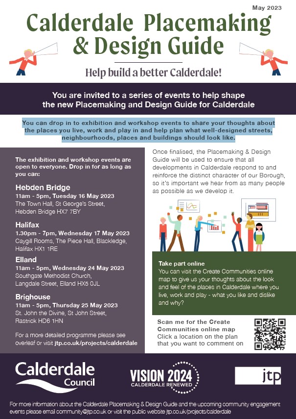 You are invited to a series of events to help shape the new Placemaking and Design Guide for Calderdale