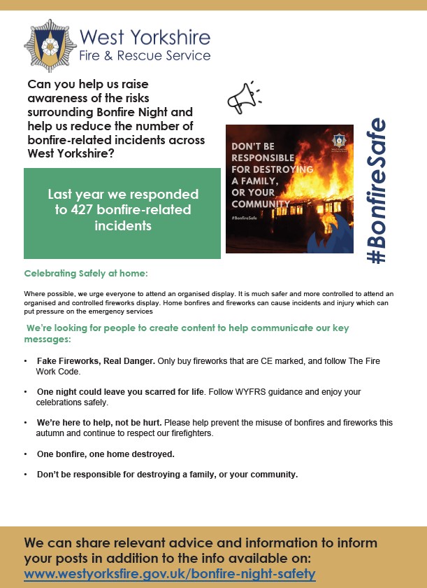 Can you help us raise awareness of the risks surrounding Bonfire Night and help us reduce the number of bonfire-related incidents across West Yorkshire?