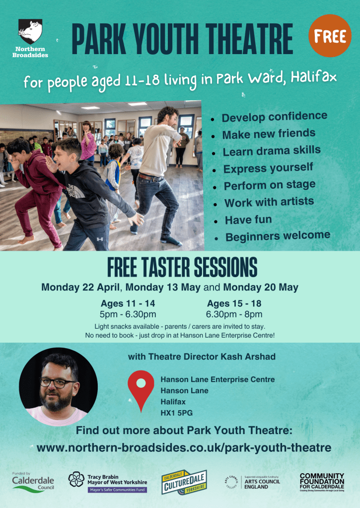 Northern Broadsides are starting a new free youth theatre for young people aged 11 – 18 living in Park Ward, Halifax.
