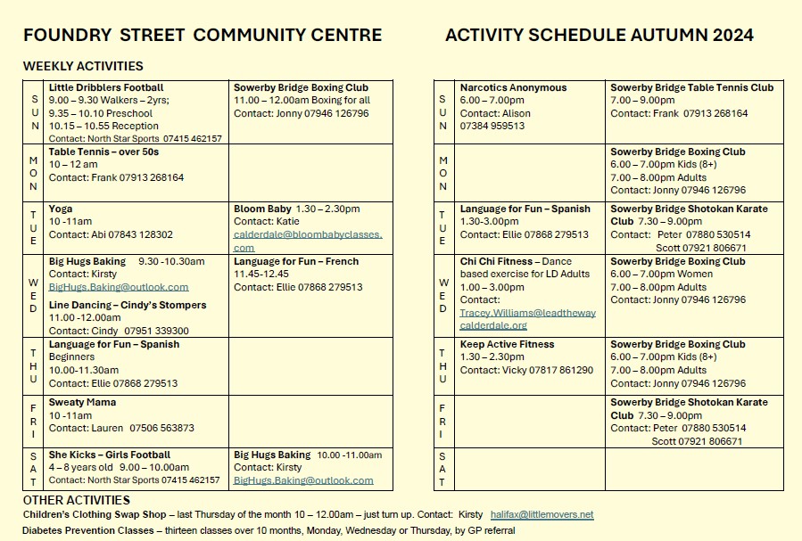 Foundry Street Community Centre Activities October 15, 2024October 15, 2024 / helloitssarahdyer Foundry Street Community Centre is now open with lots of activities. Share this: Click to share on Facebook (Opens in new window) Facebook Click to share on X (Opens in new window) X Click to email a link to a friend (Opens in new window) Email Click to print (Opens in new window) Print Click to share on Pinterest (Opens in new window) Pinterest Click to share on LinkedIn (Opens in new window) LinkedIn Click to share on WhatsApp (Opens in new window) WhatsApp Like Loading...