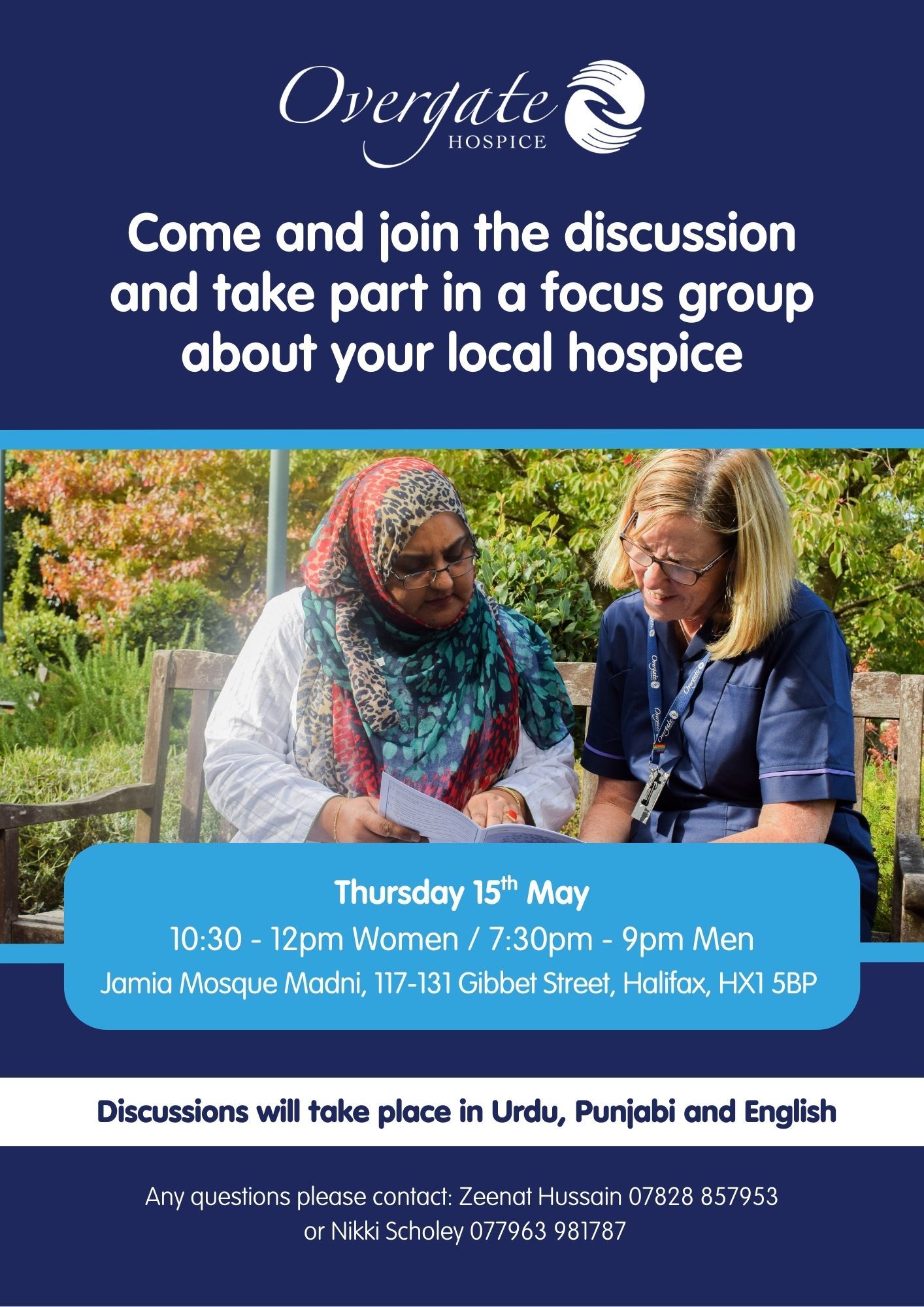 Overgate Hospice’s goal is to improve access to our services for all in our community, and part of this aim is to ensure our services meet the needs of the South Asian communities of Calderdale. If you are part of the local South Asian population, please come along to one of the events we’ve got planned this week.