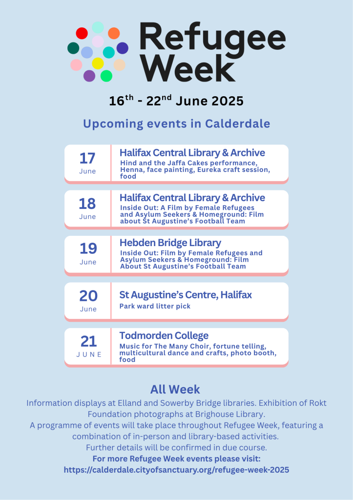Upcoming events in Calderdale June 12, 2025 / helloitssarahdyer Please see the posters below for upcoming events in Calderdale. Share this: Click to share on Facebook (Opens in new window) Facebook Click to share on X (Opens in new window) X Click to email a link to a friend (Opens in new window) Email Click to print (Opens in new window) Print Click to share on Pinterest (Opens in new window) Pinterest Click to share on LinkedIn (Opens in new window) LinkedIn Click to share on WhatsApp (Opens in new window) WhatsApp Like Loading...