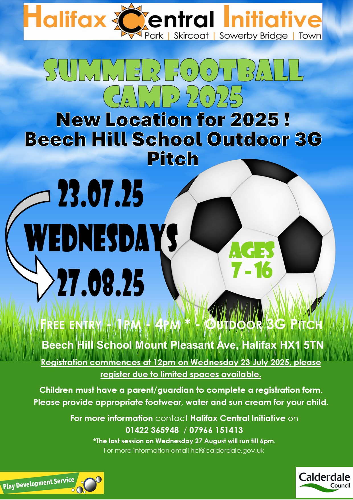 For the next 6 weeks we are running the camp at Beech Hill School on Wednesday afternoons. The first week saw over 90 children sign up and enjoy an afternoon of football training and games. The next one is on Wednesday 31 July, play starts at 1pm, if you haven’t joined us yet and you want to, please come along at 12.30 register.