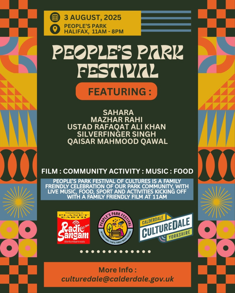 People’s Park Festival 3 August ! July 29, 2025 / helloitssarahdyer People’s Park Festival is back on Sunday 3 August! Expect local acts, incredible food vendors, a morning family-friendly film, and plenty of good vibes — all celebrating Calderdale’s rich culture. Save the date, and get ready to join the party! Share this: Click to share on Facebook (Opens in new window) Facebook Click to share on X (Opens in new window) X Click to email a link to a friend (Opens in new window) Email Click to print (Opens in new window) Print Click to share on Pinterest (Opens in new window) Pinterest Click to share on LinkedIn (Opens in new window) LinkedIn Click to share on WhatsApp (Opens in new window) WhatsApp Like Loading...