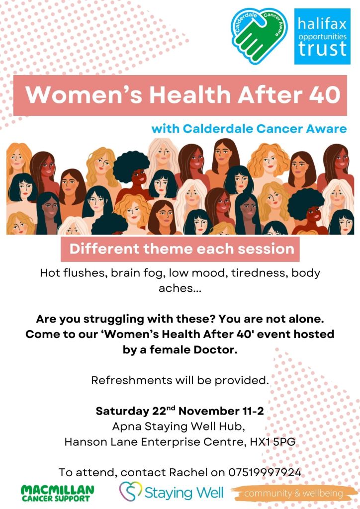 Calderdale Cancer Aware will be talk about hormonal changes after menopause and how this can impact your health.