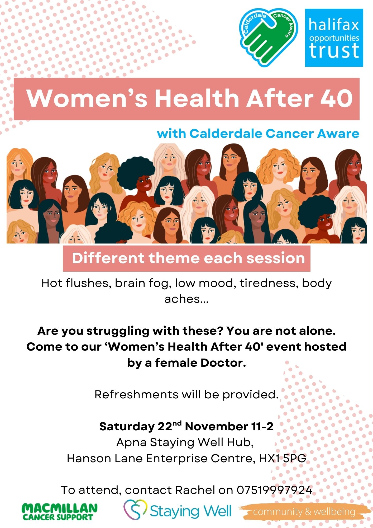 Calderdale Cancer Aware will be talk about hormonal changes after menopause and how this can impact your health.