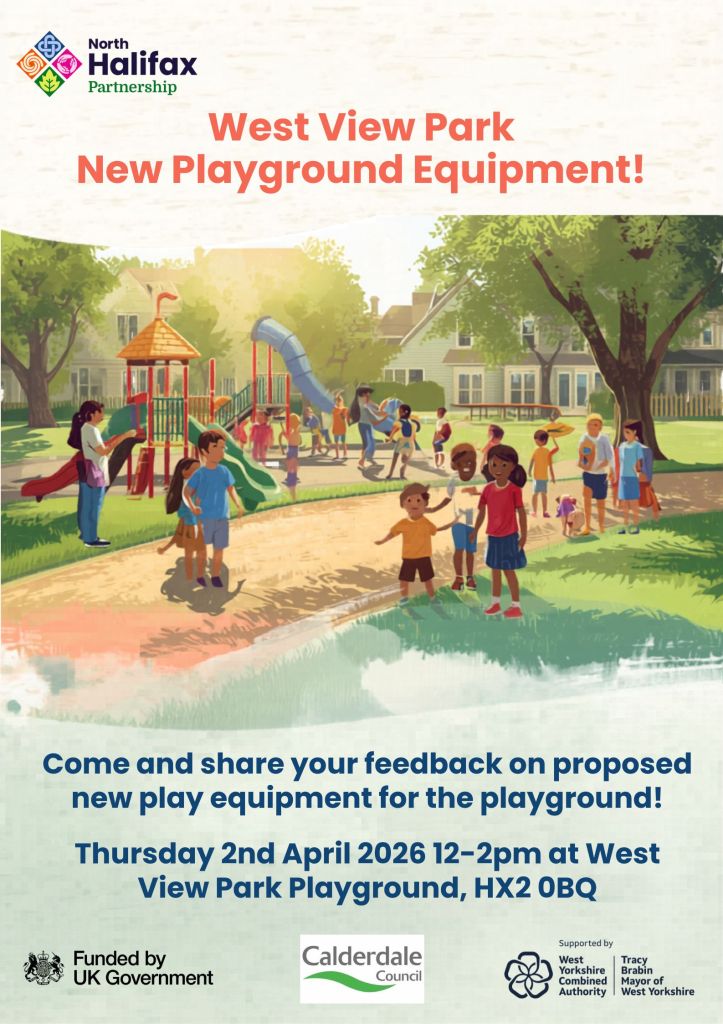 West View Park Consultation March 30, 2026 / helloitssarahdyer Come and share your feedback on proposed new play equipment for the playground!Thursday 2nd April 2026 12-2pm at West View Park Playground, HX2 0BQ Share this: Share on Facebook (Opens in new window) Facebook Share on X (Opens in new window) X Email a link to a friend (Opens in new window) Email Print (Opens in new window) Print Share on Pinterest (Opens in new window) Pinterest Share on LinkedIn (Opens in new window) LinkedIn Share on WhatsApp (Opens in new window) WhatsApp Like Loading...